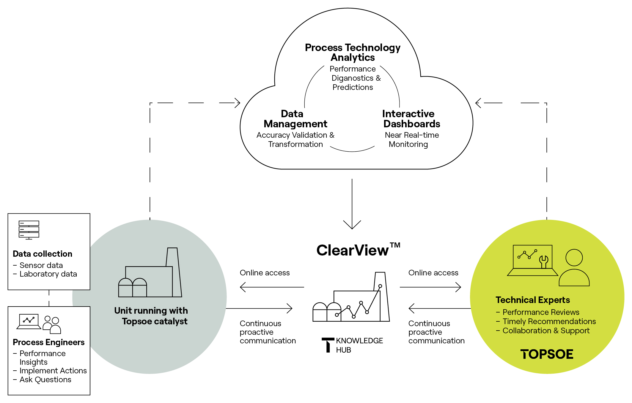 ClearView securely livestreams your unit’s operational data and enriches it using Topsoe proprietary simulation models built on our comprehensive database with both R&D and industrial data.