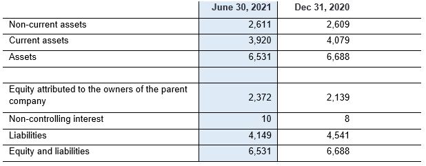 2. Equity ratio: Equity attributed to the owners of the parent company x 100 / Total assets